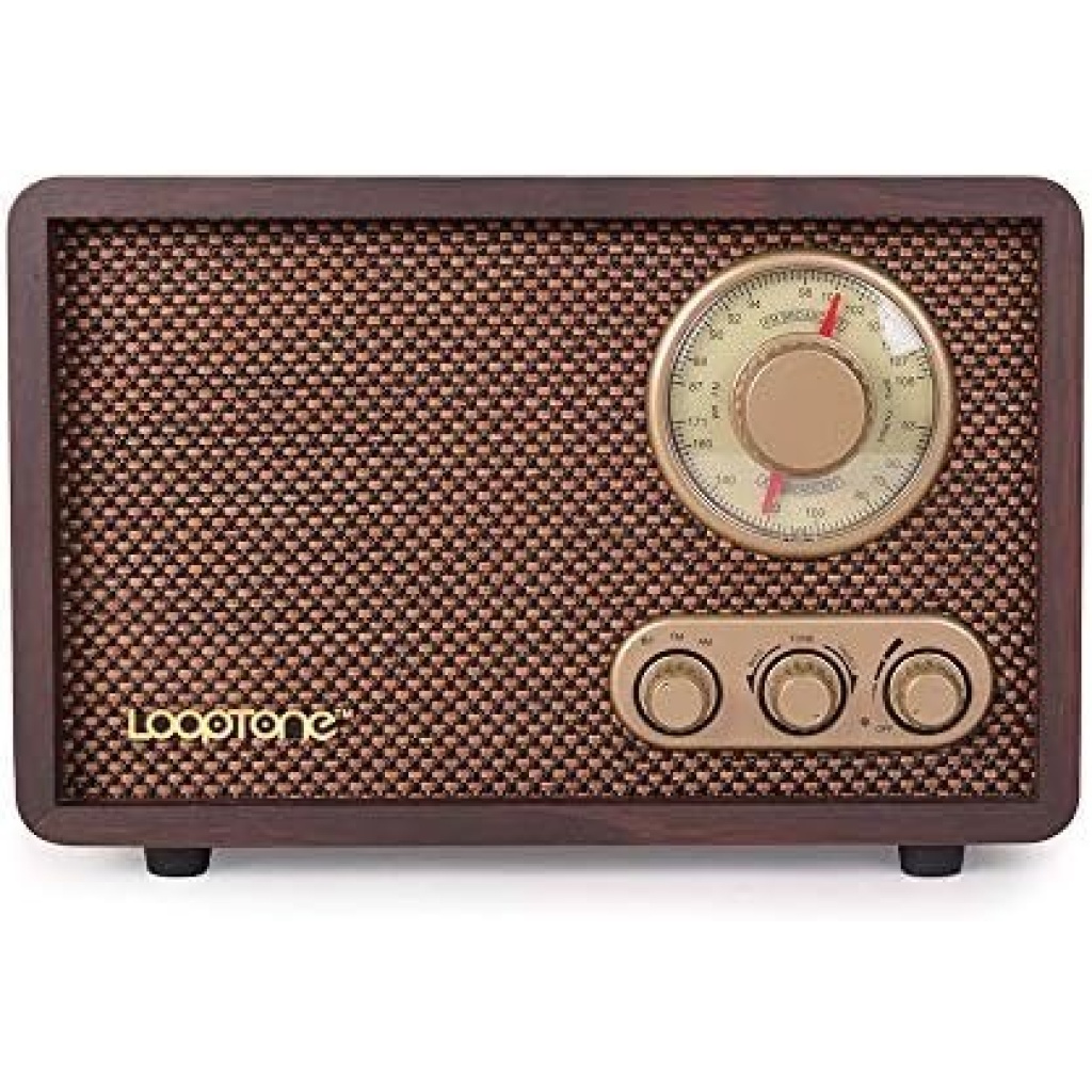 LoopTone FM AM Radio Retro Wood Radio with Bluetooth Play Mp3