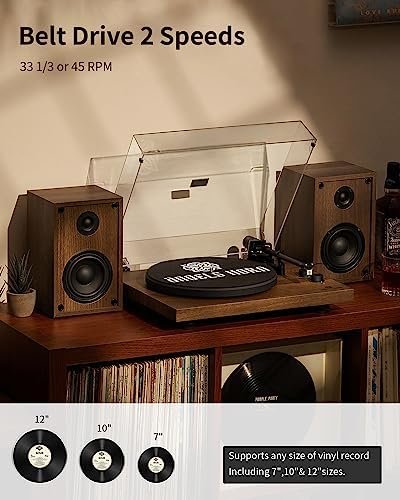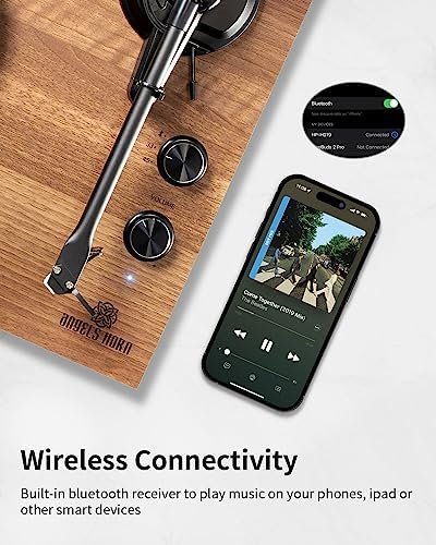 More features: Quieter belt-driven, built-in Bluetooth 4.2 input for playing your music from other mobile devices(digital music), built-In phono preamp and RCA line output, stable iron platter for educing vibration, adjustable counterweight force to avoid skipping and distortion, 2 speeds(33 1/3 & 45RPM), easy to install and use.