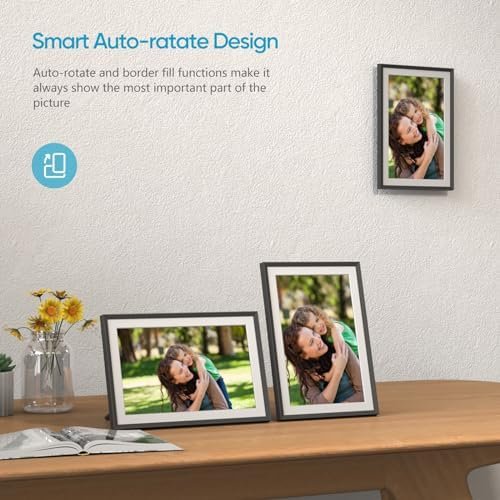 【Auto-Rotate & Slideshow】: Digital frame can automatically rotate photos to adjust the direction, allowing you to place the digital frame in either portrait or landscape mode or on the wall. With its dynamic slideshow feature, breathing life into still images, adding to the overall viewing experience.
