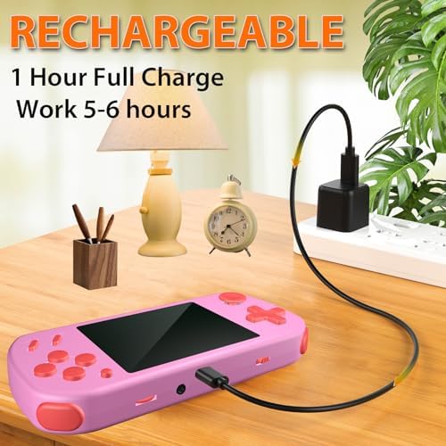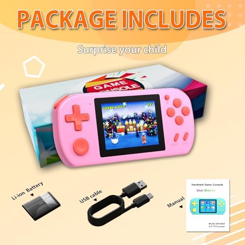 💦CLASSIC GAMES: Enjoy 268 classic games on this handheld game console with a novel design and joystick, perfect for kids ages 4-12.Packed with exciting puzzle, action, educational,and sports games.This game console provides girls and boys a well-rounded gaming experience.Believe that you and your kids will fall in love with this small gaming player machine.