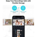 Optional Cloud & Local Storage – 24/7 CVR enables the indoor security camera to keep a nonstop recording in the cloud, avoid the risk of losing video footage from a SD card. According to the time, events type or the camera name’s to search the specific event quickly. Supports up to 128GB SD card(buy separately).
