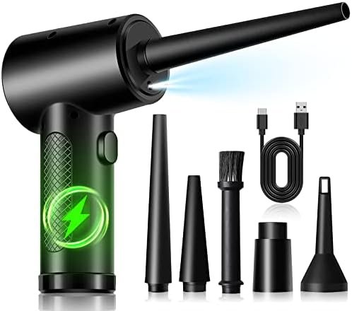 【LED Lights & Cordless Design】LED lights automatically illuminate when turned on electric air duster, allowing you to easily clean up dark corners, bringing great convenience to your cleaning. With its ergonomic shape and cordless design, it’s small, lightweight, comfortable to hold, and easy to carry around.