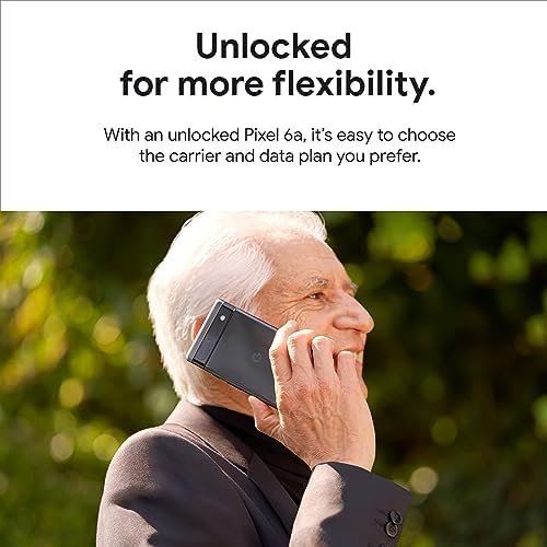 Meet Pixel 6a, the more affordable Google phone that adapts to you.[8] Powered by Google Tensor, it’s super fast and secure, with an amazing battery and camera. And it’s an unlocked Android smartphone, so you can choose the data plan and carrier that work for you.[1] LEGAL [1]Works with all major carriers. 5G service is carrier dependent. Requires a 5G data plan (sold separately). 5G service not available on all carrier networks or in all areas. Contact carrier for details. 5G service, speed and performance depend on many factors, including carrier network capabilities and signal strength. Actual results may vary. Some features not available in all areas. Data rates may apply. See g.co/pixel/networkinfo for info. [2]Estimated battery life based on testing using a median Pixel user battery usage profile across a mix of talk, data, standby, and use of other features. Average battery life during testing was approximately 29 hours. Battery life depends upon many factors and usage of certain features will decrease battery life. Battery testing conducted in California in early 2022 on pre-production hardware and software, using default settings. Battery testing conducted using Sub-6 GHz non-standalone 5G (ENDC) connectivity. Actual battery life may be lower. [3]Requires Google Photos app. Magic Eraser may not work on all image elements. [4]Wired charging rates up to 18W based on use of Google 30W USB-C® or Google 18W USB-C® Charger plugged into a wall outlet. Actual results may be slower. Adapters sold separately. Compatible with USB PD 3.0 PPS adapters. [5]Not available in all languages or countries. Not available on all media or apps. See g.co/pixel/livetranslate for more information. Translation may not be instantaneous. 3Your Pixel will receive feature drops during the applicable Android update and support periods for the phone. See g.co/pixel/updates for details. [6]Internet connection required during setup only. [7]Designed to comply with dust and water protection rating IP67 under IEC standard 60529 when each device leaves the factory but the device is not water or dust proof. The accessories are not water or dust resistant. Water resistance and dust resistance are not permanent conditions and will diminish or be lost over time due to normal wear and tear, device repair, disassembly or damage. Dropping your device may result in loss of water/dust resistance. Liquid damage voids the warranty. See g.co/pixel/water for details. [8]Compared to Pixel 5a. [9]Deblurring may not work on all photos or videos with faces. [10]Some third party apps and data may not be transferred automatically. Visit g.co/pixel/copydatahelp for information. [11]Measured diagonally; dimension may vary by configuration and manufacturing process. Smooth Display is not available for all apps or content. Smooth Display automatically adjusts to optimize for best viewing and battery performance. [12]Measured diagonally; dimension may vary by configuration and manufacturing process. [13]Maximum resolution and field of view with RAW image files setting turned on. Setting is turned off by default. See g.co/pixel/photoediting for more information. [14]Storage specifications refer to capacity before formatting. Actual formatted capacity will be less. [15]Your Pixel will receive feature drops during the applicable Android update and support periods for the phone. See g.co/pixel/updates for details. [16]Compared to MSRP of Pixel 6. [17]See g.co/pixel/astrophotography for details.