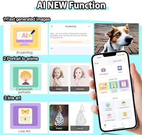 🎁AI Intelligent Printing🎁Newly upgraded AI function, AI intelligent generation of images, AI photo conversion into cartoons, line art, etc. Enter the text description of the desired image and generate the desired image for printing. You can also convert portrait photos into cartoons through AI intelligent conversion for more fun printing
