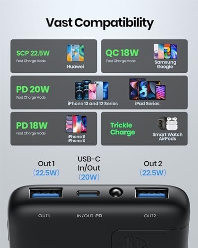 โœ…ใ€๐Ÿฎ๐Ÿฎ.๐Ÿฑ๐– ๐’๐ฉ๐ž๐ž๐๐ฒ ๐‚๐ก๐š๐ซ๐ ๐žใ€‘Combined with the most advanced PD 3.0 & QC4+ fast charging technologies, INIU 22.5W portable charger power bank can incredibly fast fuel your new iPhone from 0 to 65% in 30mins, 2X faster than traditional 2.4A chargers.