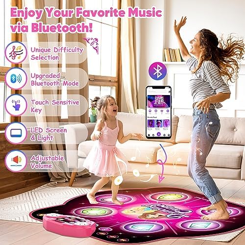 【Advanced Bluetooth Function】Feel that the built-in music is not enough? Don’t worry. This light up dance mat is Bluetooth enabled. Just connect it with your Bluetooth-enabled device. Choose your favorite song from the music list and control the volume directly from your device. Dance the day or night!