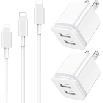 Package includes: 5-Pack Dual Port USB wall charger with 3ft + 6ft + 10ft charger cable cord.