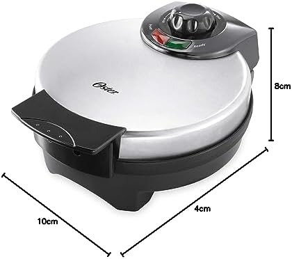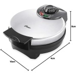 Enjoy fresh, homemade Belgian-style waffles with the Oster Belgian Waffle Maker. Featuring an 8-inch nonstick plate, this waffle maker creates large waffles with deep pockets that you can fill with tasty toppings and syrup. The temperature dial allows you to adjust the heat with a simple twist, so you can make your waffles as fluffy or crispy as you please, while the cool-touch handle offers a firm grip and helps prevent burns. This durable Belgian waffle iron is built with a sturdy stainless steel housing for long-lasting performance. And thanks to its indicator lights, the waffle maker clearly displays when the power is on and whether it is ready to bake.