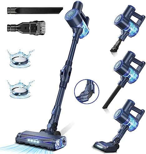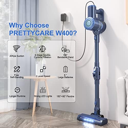 🏚️【POWERFUL SUCTION & LARGE-CAPACITY BATTERY】: Vacuum cleaner bagless features a powerful motor with 20,000Pa suction / 2 speed levels , household vacuum cleaners can easily complete deep cleaning for carpets, hardwood floors, and pet hair. Equipped with 6* Large-Capacity Batteries and Super Fast Charging, the long runtime of this vacuum cleaner carpet can meet your daily cleaning needs perfectly.