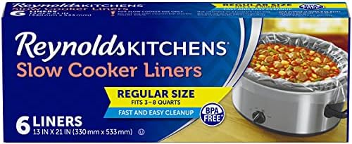 Make memorable meals with Reynolds Kitchens Slow Cooker Liners, and save time on cleanup. Grab these slow cooker bags for slow cooking without dealing with stubborn, stuck-on messes. Each slow cooker bag measures 13 x 21 inches to fit 1- to 3-quart round and oval slow cookers, and is made with a BPA-free heat resistant (up to 400 degrees Fahrenheit) nylon-blend construction. Spend more time with your loved ones and less time in the kitchen with these FDA-compliant, food-safe Reynolds Kitchens Slow Cooker Liners.