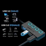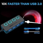Sabrent 4-Port USB Hub, USB 3.0 Fast Data Hub with Individual LED Power