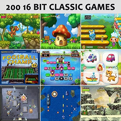 200 CLASSIC GAMES: The handheld games has 200 built-in non-repeating classic games, including 6 types of games: puzzle, action, education, sports, leisure, and tabletop. Meanwhile, the game console comes with two 6-in-1 game cards, which will look different from other game consoles.