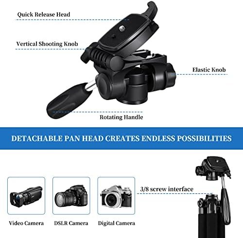 【 3-Way Pan Head 360° Rotation】 JOILCAN compact camera tripod is equipped with a stable smooth ergonomic 3-way pan head: headlock, pan lock, and tilt lock, which can satisfy all the needs of vertical, horizontal, and overhead photography, etc. You can freely adjustable angles for 360° panoramic shooting, 180°up and down shooting, and 90°vertical portrait. When you employ pans and tilts during photo or video recording, the tripod offers superb stability and gives you excellent, smooth results.