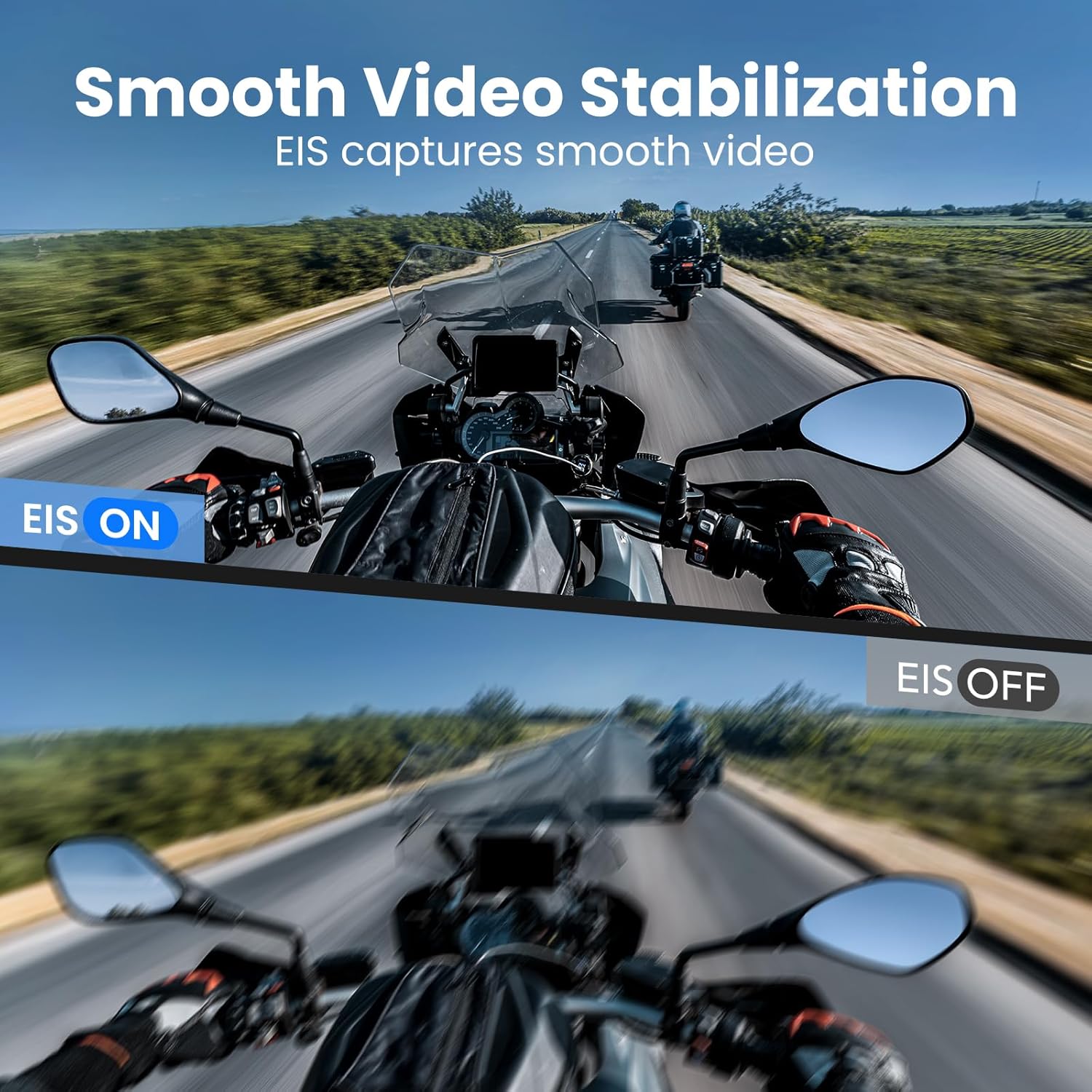 【Built-in WiFi & Wirless Sharing】 The sports camera comes with the Live DV APP and 2.4G WiFi connection, which makes it easy to get photos and videos off your camera directly. Notes: It needs to download the footage to your phone by APP firstly before transferring and sharing footage. The EIS (Electronic Image Stabilization) helps smooth out videos, reducing shake, which is great for high-intensity activities.